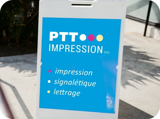 Avec des couleurs vibrantes et une impression de qualité, vos messages prennent vie en plein air. Donnez un coup de pouce à votre visibilité et communiquez efficacement avec les affiches de trottoir personnalisées, prêtes à se démarquer. »